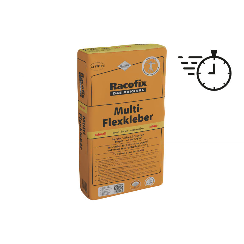 Gagnez en efficacité avec le mortier-colle Multi-Flex Rapide de Racofix, une solution haute performance à prise rapide pour vos chantiers urgents. Classé C2 FTE S1, ce mortier flexible permet de circuler et de jointoyer après seulement 3 heures. Idéal pour le grès cérame, les balcons et les terrasses, il assure une adhérence maximale même sur supports chauffants.