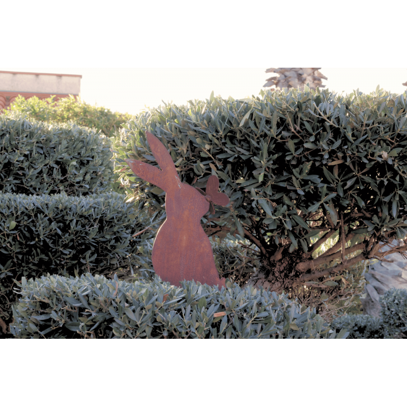 Apportez une touche champêtre et pleine de douceur avec cette silhouette de lapin en métal rouillé. Idéal pour les jardins ou terrasses, ce lapin élégant s’intègre parfaitement à votre décor extérieur tout en résistant aux intempéries.