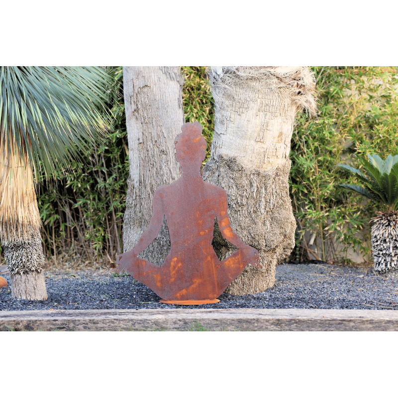 Cette silhouette yoga en métal rouillé incarne la paix intérieure et l’harmonie. Idéale pour créer un espace méditatif dans votre jardin, elle se fond parfaitement dans un décor zen.